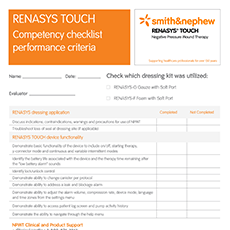 Renasys Application RENASYS TOUCH Traditional Negative Pressure Wound Therapy System (Acute) RENASYS TOUCH Traditional Negative Pressure Wound Therapy System (Active) RENASYS TOUCH Traditional Negative Pressure Wound Therapy System (Active) Getting started Application Clinical evidence Pricing RENASYS TOUCH Application See Spanish versions RENASYS - AB Guide RENASYS TOUCH - Competency checklist performance criteria RENASYS - Foam and Gauze Information Sheet RENASYS - Foam Application Guide RENASYS - In-between patient video RENASYS - Foam Application Video RENASYS - Gauze Application Guide RENASYS - Gauze Application Video RENASYS - Soft Port Guide RENASYS - White Foam Application Guide RENASYS TOUCH - Quick Reference Guide Spanish language versions Aplicación del kit de apósitos de esponja RENASYS-F con puerto blando Aplicación del kit de apósitos de gasa RENASYS-G con puerto blando Creado para ofrecer comodidad Desarrollado para ofrecer una atención óptima: Puerto blando RENASYS RENASYS WF White Foam: Apósito de TP