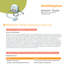 Renasys Touch Pricing RENASYS TOUCH Traditional Negative Pressure Wound Therapy System (Acute) RENASYS TOUCH Traditional Negative Pressure Wound Therapy System (Active) RENASYS TOUCH Traditional Negative Pressure Wound Therapy System (Active) Getting started Application Clinical evidence Pricing RENASYS TOUCH Pricing/warranty RENASYS TOUCH Warranty